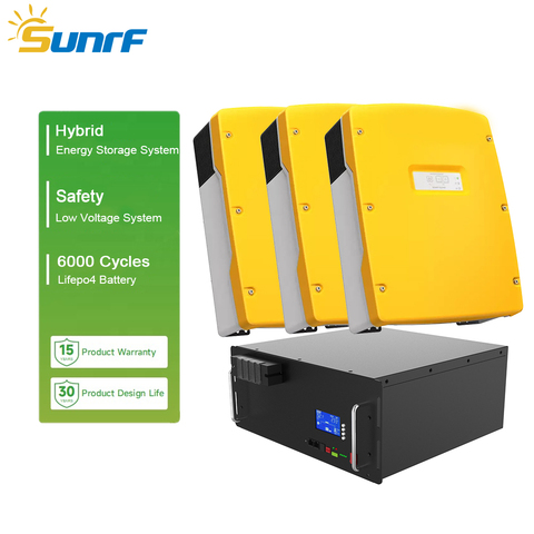 מהפך היברידי דיי תלת פאזי מערכת סולארית היברידית אנרגיה 10KW מערכת אחסון סולארית
